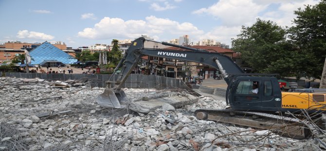 Proje alanında kalan alışveriş merkezine ait binanın yıkımı için başlatılan süreç de hızla devam ediyor. Binanın bodrum katlarının kullanılacak olması nedeniyle yıkım kontrollü şekilde devam ederken, bina zemin kata kadar indirildi. Zemin katın da yıkılmasının ardından açığa çıkan alanda uygulama projesinin startı verilecek.