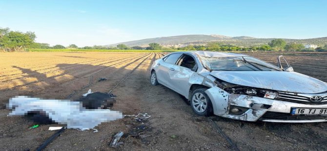 Bursa'nın Karacabey ilçesinde direksiyon hakimiyetini kaybeden otomobil sürücüsü kaza yaptı. Taklalar atarak tarlaya uçan araçtaki 1 kişi öldü, 2 kişi de yaralandı.
