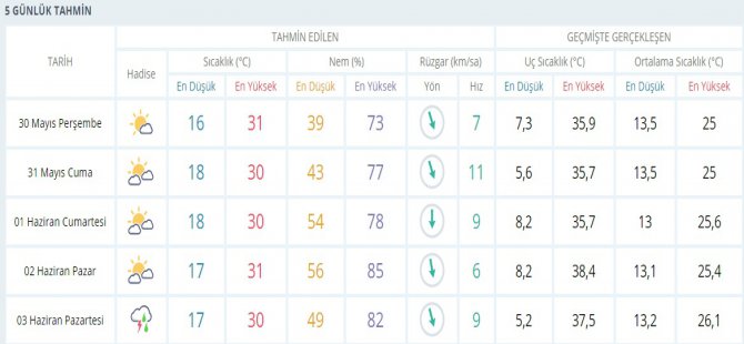 Bursa’da bugün termometreler 31 dereceyi gösterecek. Cuma ve cumartesi günü termometreler 30 dereceyi gösterecek. Pazartesi günü ise yağış bekleniyor.