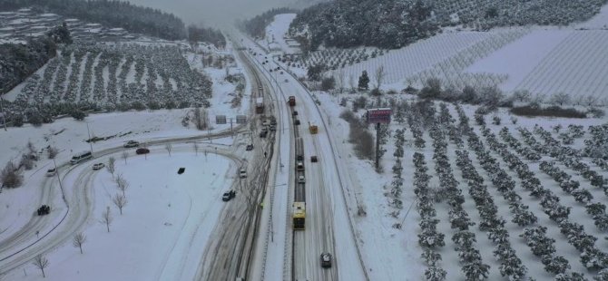 Bursa'da yaşanan kar esareti, drone ile havadan da görüntülendi.