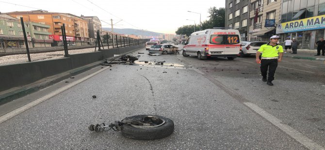 Bursa'da kontrolden çıkan otomobil 120 kilometre hızla yol kenarında bulunan bir iş yerine çarptıktan sonra, yola savrularak parçalandı.