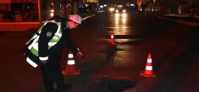 İnegöl'de 1 metre derinliğinde yolda çökme meydana geldi.