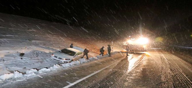 Erzincan’da etkili olan kar yağışı ve tipi, ulaşımda aksamalara neden oldu. Kentin yüksek kesimlerinde akşam saatlerinde etkili olmaya başlayan kar yağışı ve tipinin ardından Erzincan-Sivas kara yolundaki Sakaltutan Geçidinde ulaşım güçlükle sağlanıyor. Olumsuz hava koşulları nedeniyle hazırlıksız yakalanan bazı sürücülere, araçların trafiği engellememesi için kara yolları ve polis ekipleri iş makineleriyle destek verdi. Karayolları ekipleri, iş makineleriyle yolları kardan temizleyip tuzlama yaparak trafiği açık tutmaya çalışıyor. Polis ekipleri ise yollarda kar yağışı nedeniyle tır ile çekici gibi ağır tonajlı araçları durdurup sürücüleri uyardı.