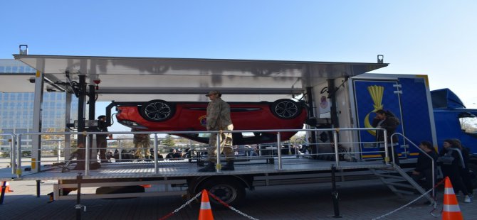 Bu simülasyon aracıyla, öğrencilere kaza anında emniyet kemerinin ne denli önemli işlev gördüğünü ve araçtaki her yolcunun, emniyet kemeri takmasının neden zorunlu olduğunu anlatıldı. Jan.Ast.Subay Kd.Baş.