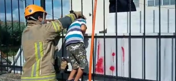 Okulun korkuluklarına sıkışan çocuğu itfaiye böyle kurtardı