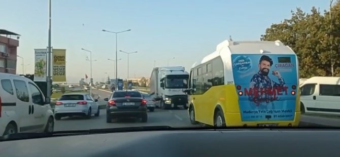 Bursa'da 3 şeritli ana yolda ters yöne giren bir tır trafiği birbirine kattı. Trafik polisleri tarafından yakalan sürücüye bin 228 lira cezai işlem uygulandı.